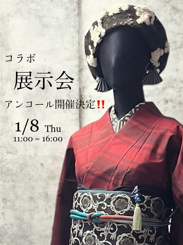 今月5日から7日まで開催させて頂いたコラボ展示会ですが、日程が合わず来ることが出来なかった方々から熱いリクエストを頂きまして、年明け1月8日(木)に一日限定でアンコール開催させて頂くことになりましたー!👏✨